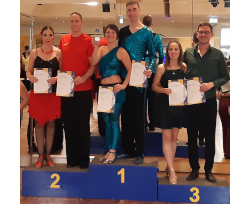 ![]() Das Tanzstudio Let’s Move aus Denzlingen war wieder erfolgreich unterwegs: Beim Discofox Turnier um den Bodenseecup am 5. November 2022 ertanzten sich Alex Hepp und Serena Petri den 2. Platz in der Hauptklasse (die schnelle Runde hatten sie sogar gewonnen) und Thomas Link und Vanessa Ruhl erkämpften sich Platz 4 in der Beginner-Klasse auf ihrem allerersten Tanzwettbewerb (ein Wertungsrichter wollte die beiden in der langsamen Runde auf Platz 2 sehen). In Eisenberg in der Pfalz am 19. November 2022 landeten Thomas Link und Vanessa Ruhl im Finale auf dem 7. Platz in der DAT-Meisterreihe der Discofox-Hobby-League (einer der Wertungsrichter wollte sie auf dem 4. Platz sehen) und hier erreichten Serena Petri und Alex Hepp wieder die Silbermedaille, dieses Mal in der Profi-League im Discofox und das Salsa-Turnier wurde mit Gold belohnt. | |||